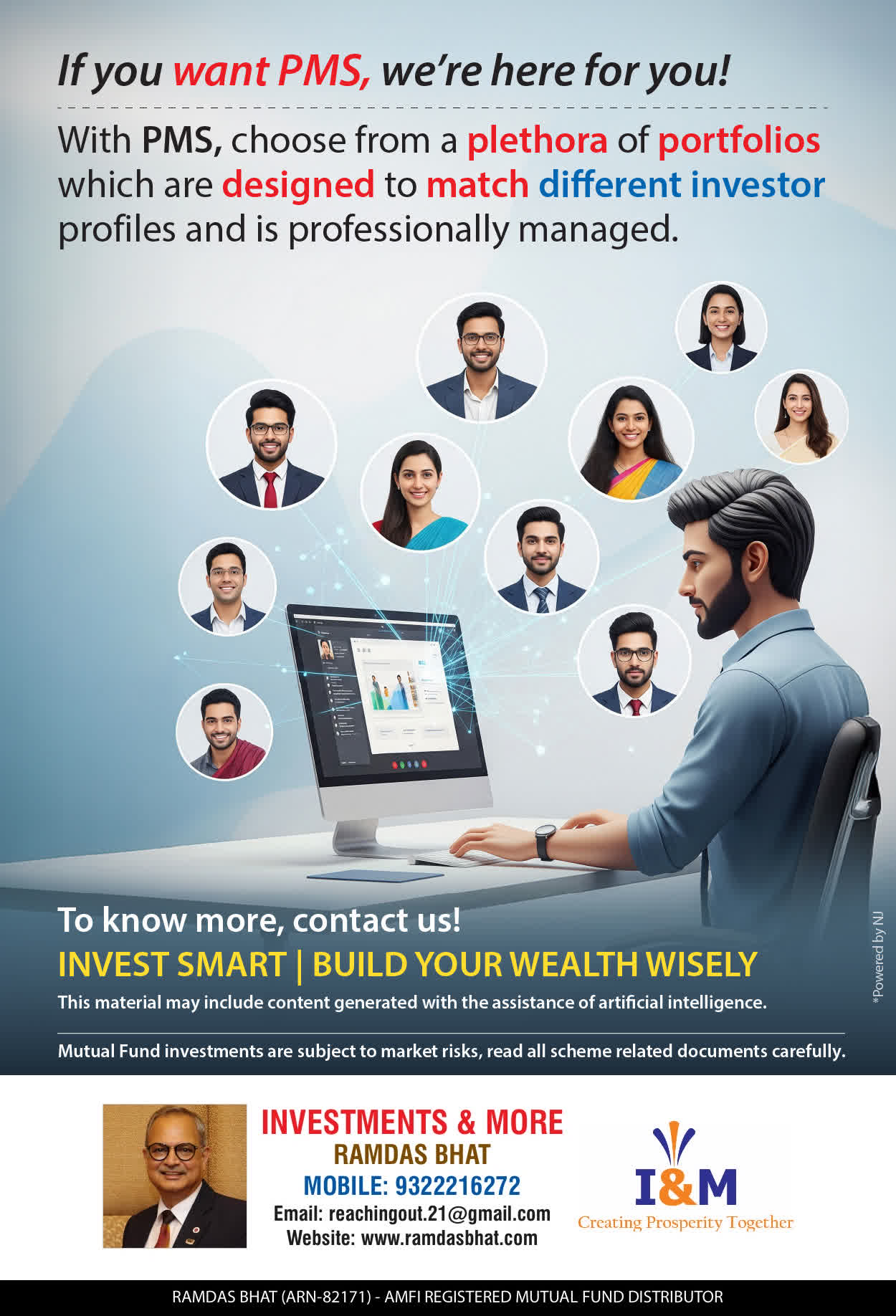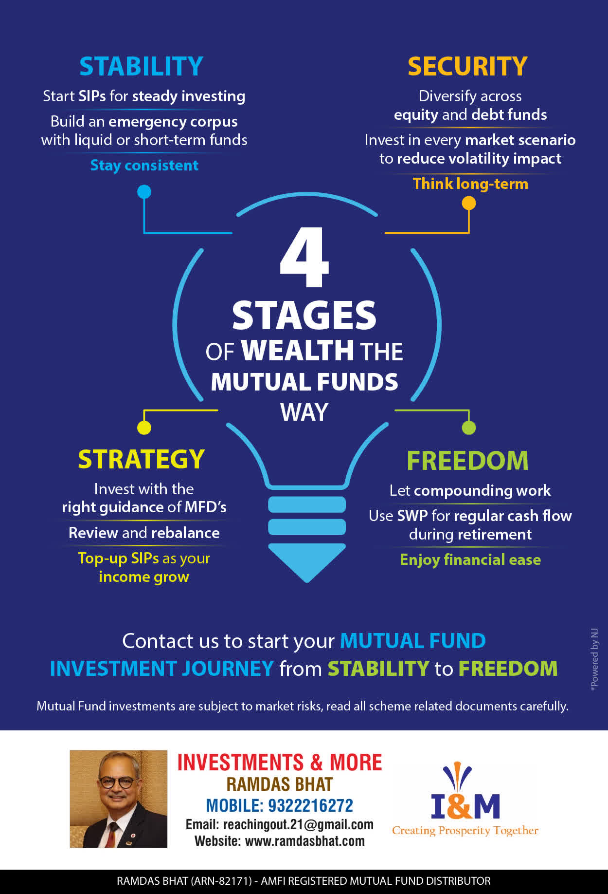 We offer our services through personal counsel with each of our clients after understanding their wealth distribution needs. Our approach is to enable our clients to understand their investments, have knowledge of investment products, and that they make proper progress towards achieving their financial goals in life.